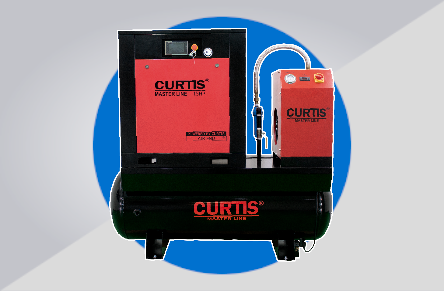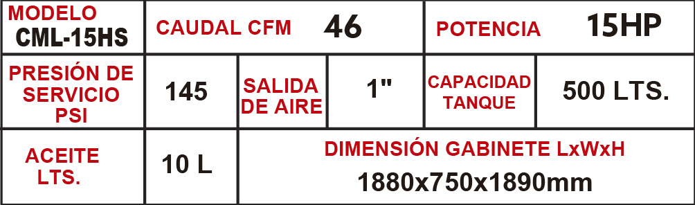 Compresor de tornillo de 15 HP, montado sobre tanque, con una presión de 145 PSI, CFM 46