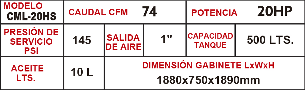Compresor de tornillo de 20 HP, montado sobre tanque, con una presión de 145 PSI, CFM 74
