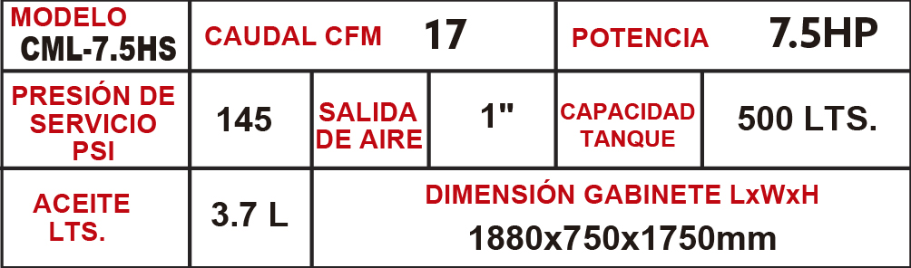 Compresor de tornillo de 7.5 HP, montado sobre tanque, con una presión de 145 PSI, CFM 17