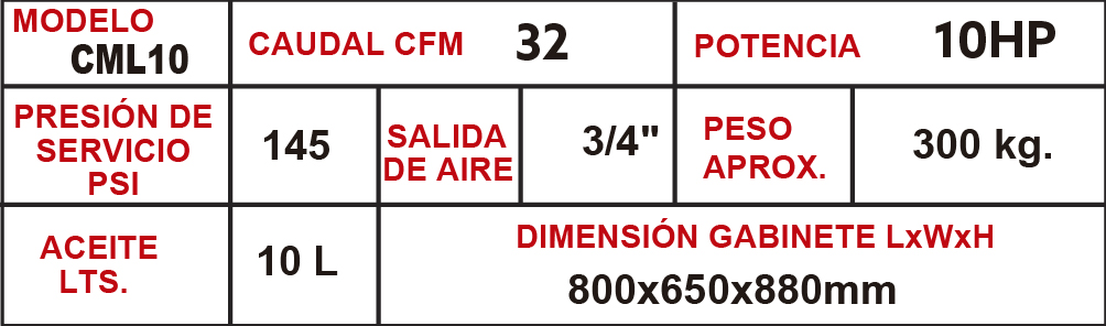 Compresor de tornillo de 10 HP, con una presión de 145 PSI, CFM 32